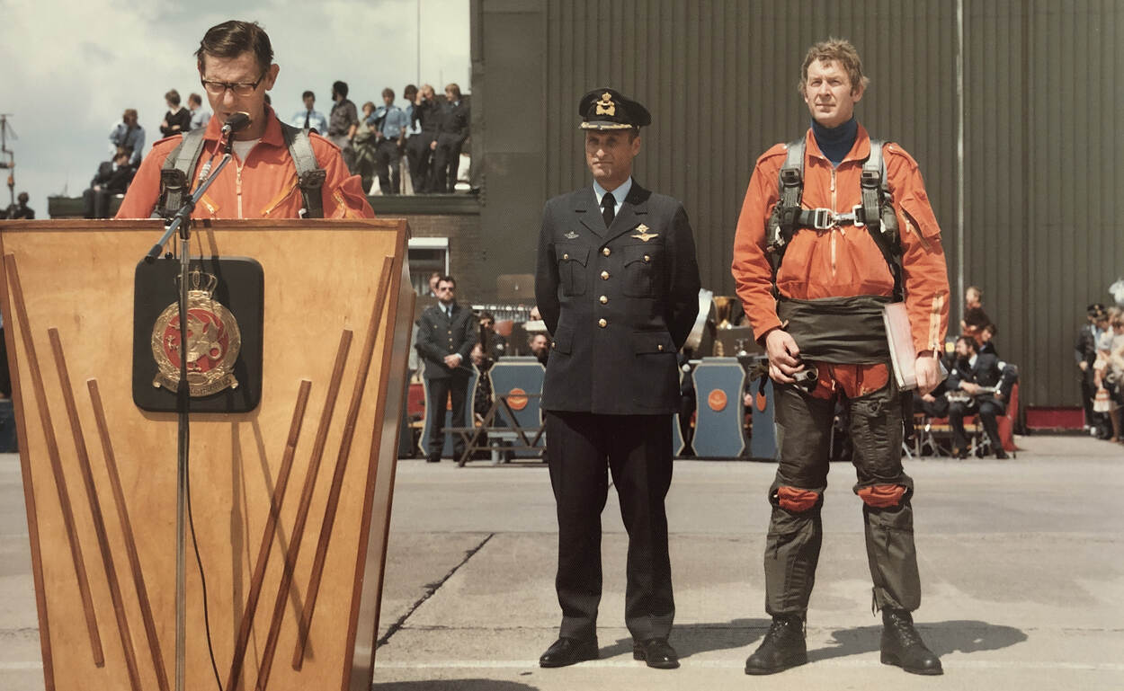 En dan is het 7 juni 1979. Sneek vliegt die ochtend met een Alouette III van de SAR van Leeuwarden naar Schiphol waar Fokker al vanaf 1977 aan de F-16 bouwt. Sneek: “De afdeling voorlichting had bedacht dat we met oranje overalls moesten vliegen. Die vallen lekker op als we uitstappen. Maar, die had de luchtmacht helemaal niet! De marine wel, dus die moesten we daar lenen. Voor mij hoefde het allemaal niet zo heel opvallend.”
