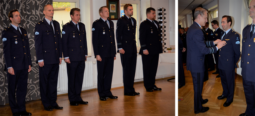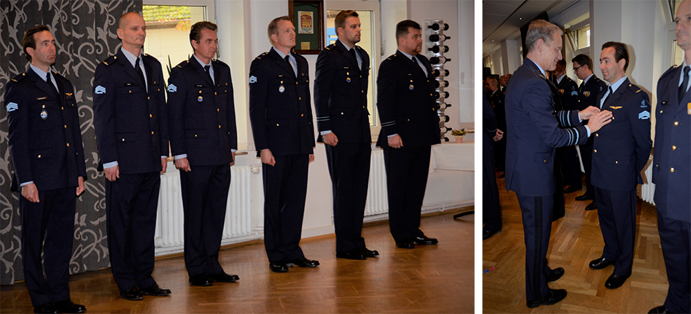 Twee zilveren medailles en vier wings reikte luitenant-generaal Dennis Luyt op 2 november uit op NAVO-vliegbasis Geilenkirchen.