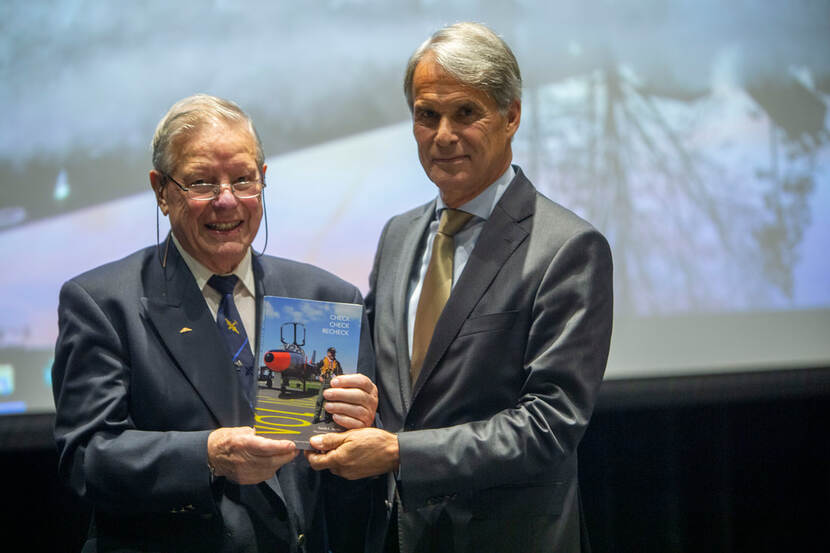 Na zijn luchtmachtcarrière werd Jacobs vlieginstructeur en examinator bij de Rijksluchtvaartschool op Groningen Airport Eelde. Over zijn vliegervaringen publiceerde hij eind 2019 het boek ‘Check Check Recheck’, dat hij samen schreef met Gerrit Brand. Jacobs werd 89 jaar. Foto: uitgeverij Nobelman