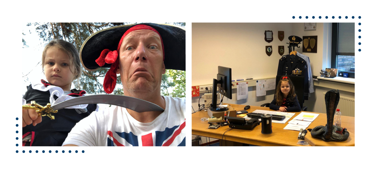 “Op vrijwel al mijn plaatsingen heb ik ervoor gekozen binnen te slapen. Dat geeft in mijn huidige functie ook thuis rust, want het werk hier is eigenlijk nooit gedaan. Ik probeer een goede balans tussen werk en privé te vinden, maar dat is als squadroncommandant nog steeds niet echt goed gelukt. Mijn grootste hobby is wel mijn gezin en ik probeer het weekeinde zoveel mogelijk met vrouw en dochter samen te doen.