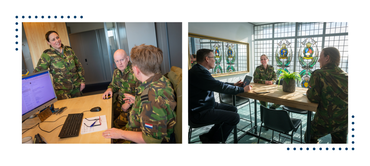 “Voor de selectie voor de Hogere Defensie Vorming maakte ik in 2017 een persoonlijk dossier. Ik vroeg collega’s uit mijn laatste drie functies om mij in één zin te omschrijven. Voor de komma waar mijn kracht ligt en achter de komma waarin ik me kan ontwikkelen. Zo wilde ik een scherpe 50/50-feedback. In de feedback herkende ik mezelf goed. Ik ben een enthousiaste stuiterbal, creatief en vind het leuk mensen mee te krijgen, maar de keerzijde was dat ik te snel kan gaan. Het was vaak eerst praten, dan denken. Voor mijn kolonelsbenoeming, vorig jaar, heb ik opnieuw op deze manier feedback gevraagd. Nu dus van mensen rondom mijn laatste functie. Ik zag in deze feedback dat ik in de kern dezelfde Franka ben gebleven, maar de scherpte is er af. Ik ben zachter geworden en bedachtzamer. Daar ben ik trots op.
