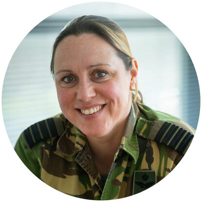 “Ik ben jong getrouwd, was 22 jaar en zat nog op de KMA. Op mijn 24e kocht ik met mijn man een dijkhuisje, dat we nog steeds aan het opknappen zijn. We hebben twee paarden, een hond, een kat en schapen. Intussen werkte ik enthousiast aan mijn loopbaan binnen de luchtmacht. Op een gegeven moment voelden we dat we ook graag een gezin wilden. We dachten er samen over na op welke manier. We kozen uiteindelijk heel bewust voor adoptie. Onze zoon en dochter zijn geboren in de Democratische Republiek Congo. Ze kwamen in 2010 naar Nederland, nadat mijn man en ik ze adopteerden. Ze waren toen 3,5 en 6 jaar. Ik ben ongelooflijk trots op onze kinderen. Op hoe zij omgegaan zijn met alle veranderingen in hun leven. Ik vind het prachtig om dat samen met hen mee te mogen maken.”