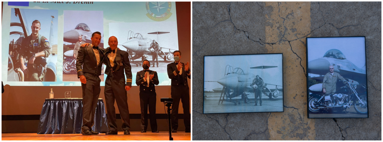 Hoewel hij door zijn vele missies vervroegd met pensioen kan, tekent Fred op Sheppard toch nog acht maanden bij. Met één enkel doel: als actief dienend militair de wings van zijn zoon opspelden. Fred: “Het liefste wilde ik dat samen met mijn vader, Max’ opa, doen, maar die kon door corona niet naar de VS komen. Uiteindelijk zijn er tijdens de ceremonie foto’s getoond, een van mij bij de F-16 en een van mijn vader bij de F-104. Een heel bijzonder moment.”