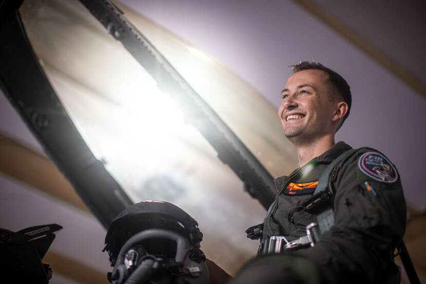 Het was niet zo dat zijn kamertje in Uden vroeger vol hing met F-16-posters. Nou ja, er stond een oude schietstoel van zijn vader, maar Max (27) heeft zo’n flauw vermoeden dat daar ooit simpelweg een lege plek voor moest worden gezocht. Het vliegervak an sich hield ‘m in eerste instantie niet zo bezig.