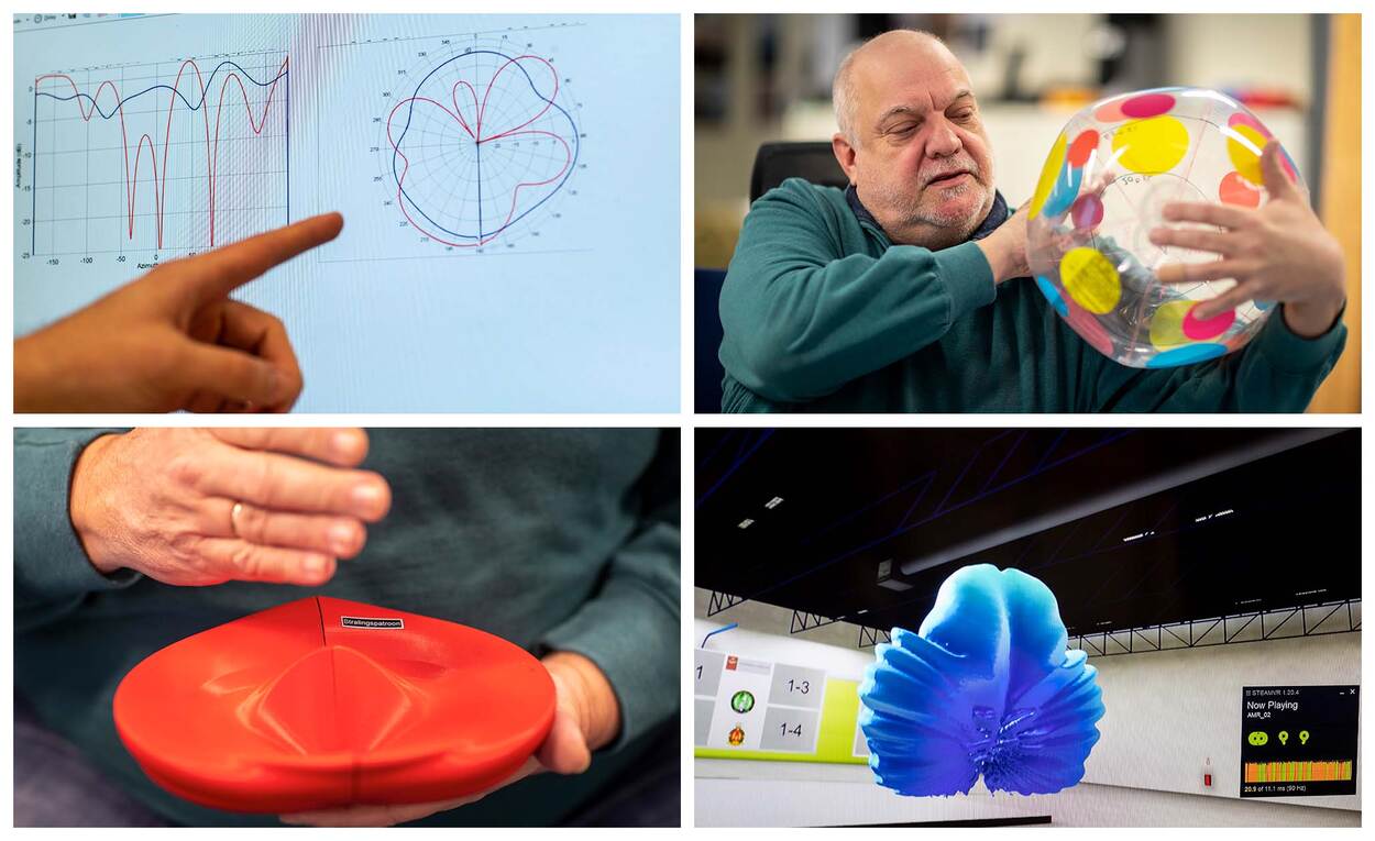 Van toen naar nu. De werking van de antenne in een grafiek, getekend op de bal, een 3D-model en door de VR-bril.