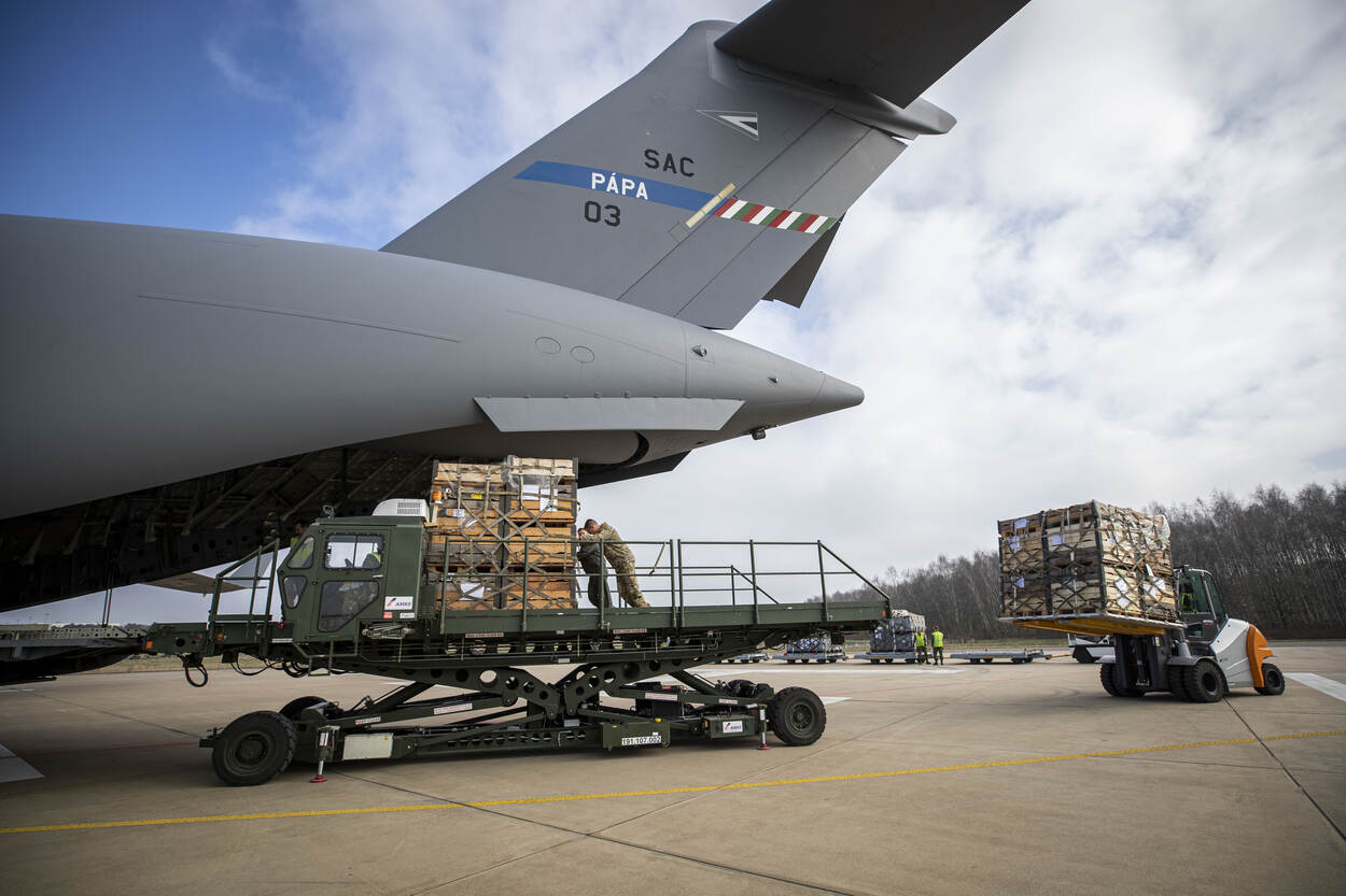 - C-17 transportvliegtuig van de Strategic Airlift Capability voor het strategisch transport van militair materieel voor Oekraïne;