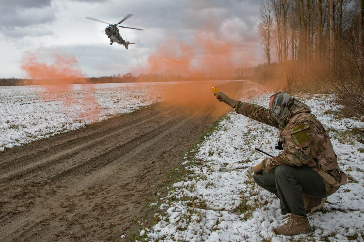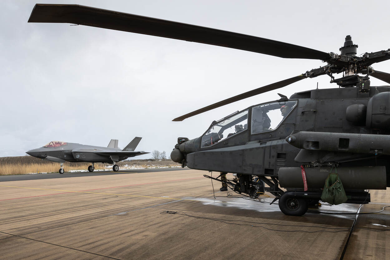 “Dat klopt. Voor het eerst deden er F-35’s mee, maar ook een Cougar en drie Apaches. Samen voerden ze een combat search and rescue-missie uit. In het scenario kregen ze te maken met een neergestorte straaljager en een gewonde vlieger. Die persoon moest in veiligheid worden gebracht. Jachtvliegtuigen maakten daarvoor het luchtruim vrij, zodat de Cougar een medische evacuatie kon uitvoeren onder bescherming van twee Apaches. Ook hebben we met Apaches close air support getraind met grondtroepen. Dat trainen we normaal alleen met jachtvliegtuigen. Het voordeel van samen met Apaches opereren is dat zij goed de doelen op de grond kunnen aangeven. Ze kunnen namelijk laagvliegen en goed zien wat er op de grond gebeurt. Ook leggen ze direct contact met de grondtroepen.