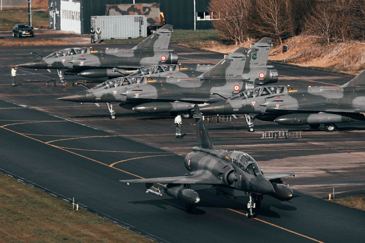 Franse Mirage 2000D’s taxiën uit voor een nieuwe missie