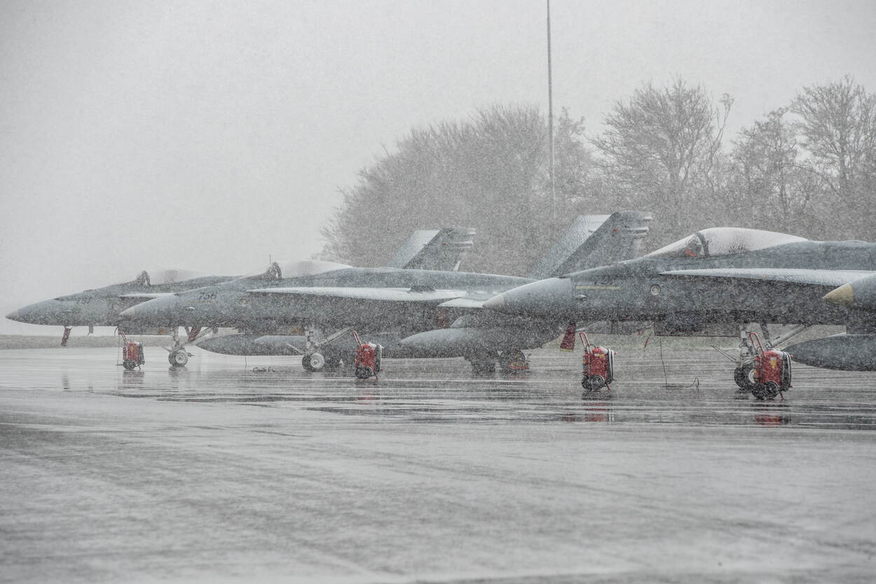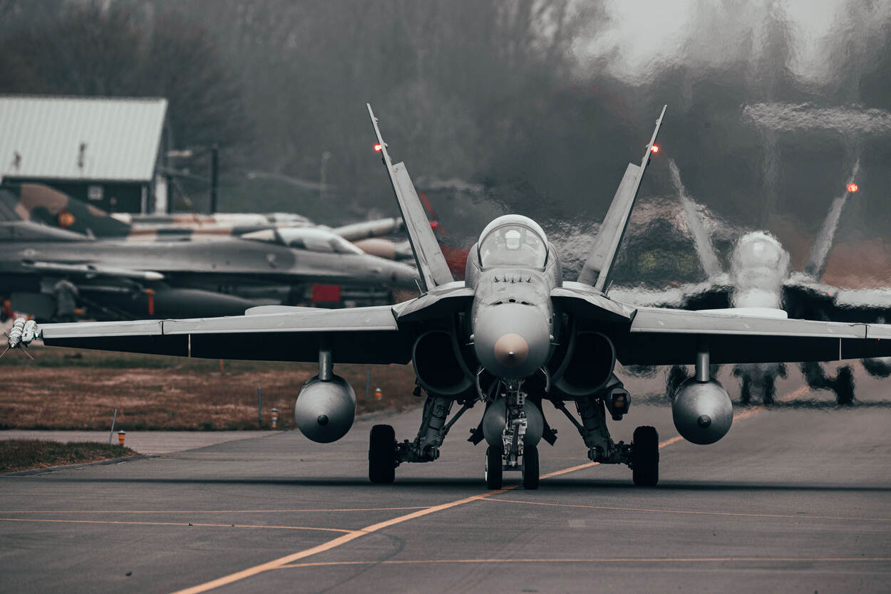 Canadese CF-18A’s (in Canada bekend onder de naam CF-188) op weg naar de startbaan.
