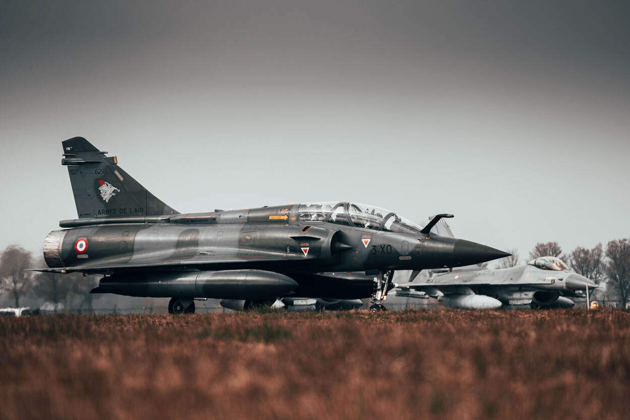 Een Mirage 2000D met daarachter een Nederlandse F-16AM