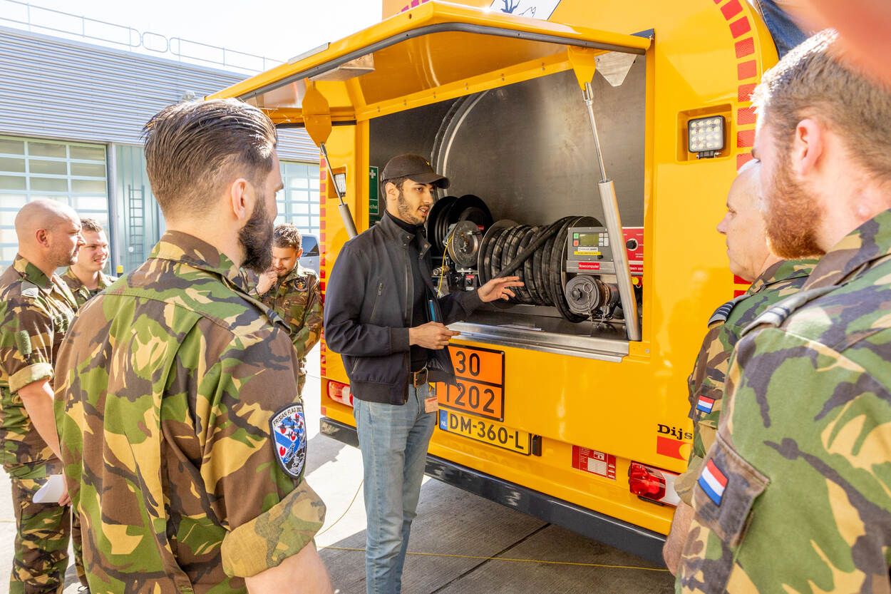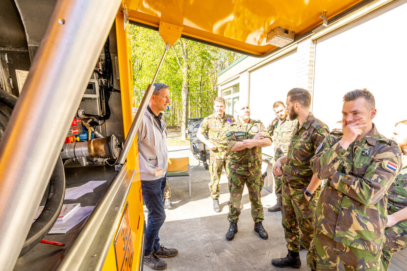 “Iedereen op de werkvloer is blij dat er nieuwe voertuigen komen’, aldus sergeant-majoor John van der Wijst. Als floormanager is hij verantwoordelijk voor de uitgifte van brandstof op Vliegbasis Volkel. Opmerkelijk vindt Van der Wijst de ruimte achter de bestuurderscabine: bij ‘gewone’ vrachtwagens doorgaans de slaapruimte. “Die is in ons geval handig om er persoonlijke beschermingsmiddelen en absorptiemateriaal op te bergen.” In de cabine bevindt zich ook een digitale volumemeter voor de administratie. “Dit apparaat geeft heel precies aan hoeveel liters je overtankt. Dat is een administratieve verplichting.”