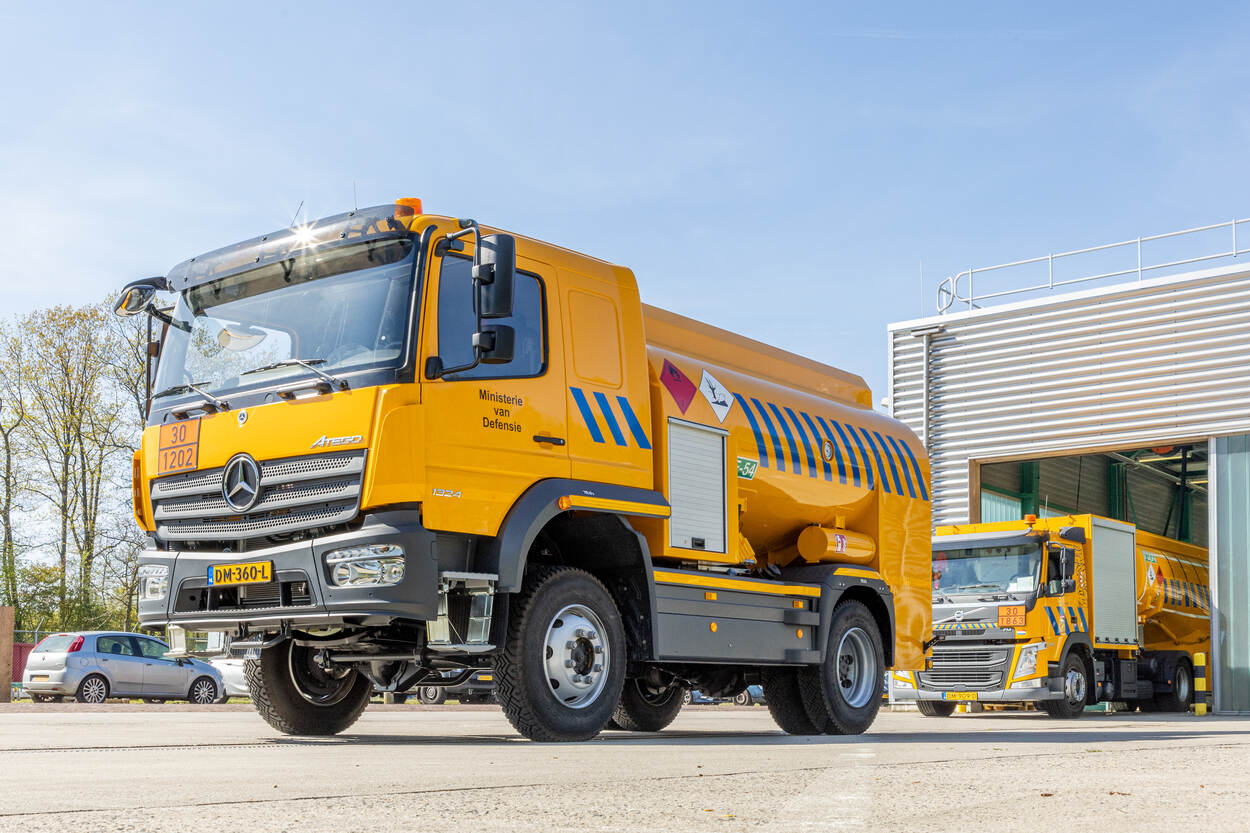 Vaak opereren ze uit het zicht, in de schaduw van de vliegoperaties. Maar dat maakt de acht pas aangeschafte Atego ‘4.000-liter’ diesel-distributievoertuigen niet minder belangrijk. Op de velden tanken ze de aggregaten en compressors bij. Een gewichtige taak, want zonder licht en lucht kun je vliegen wel vergeten.