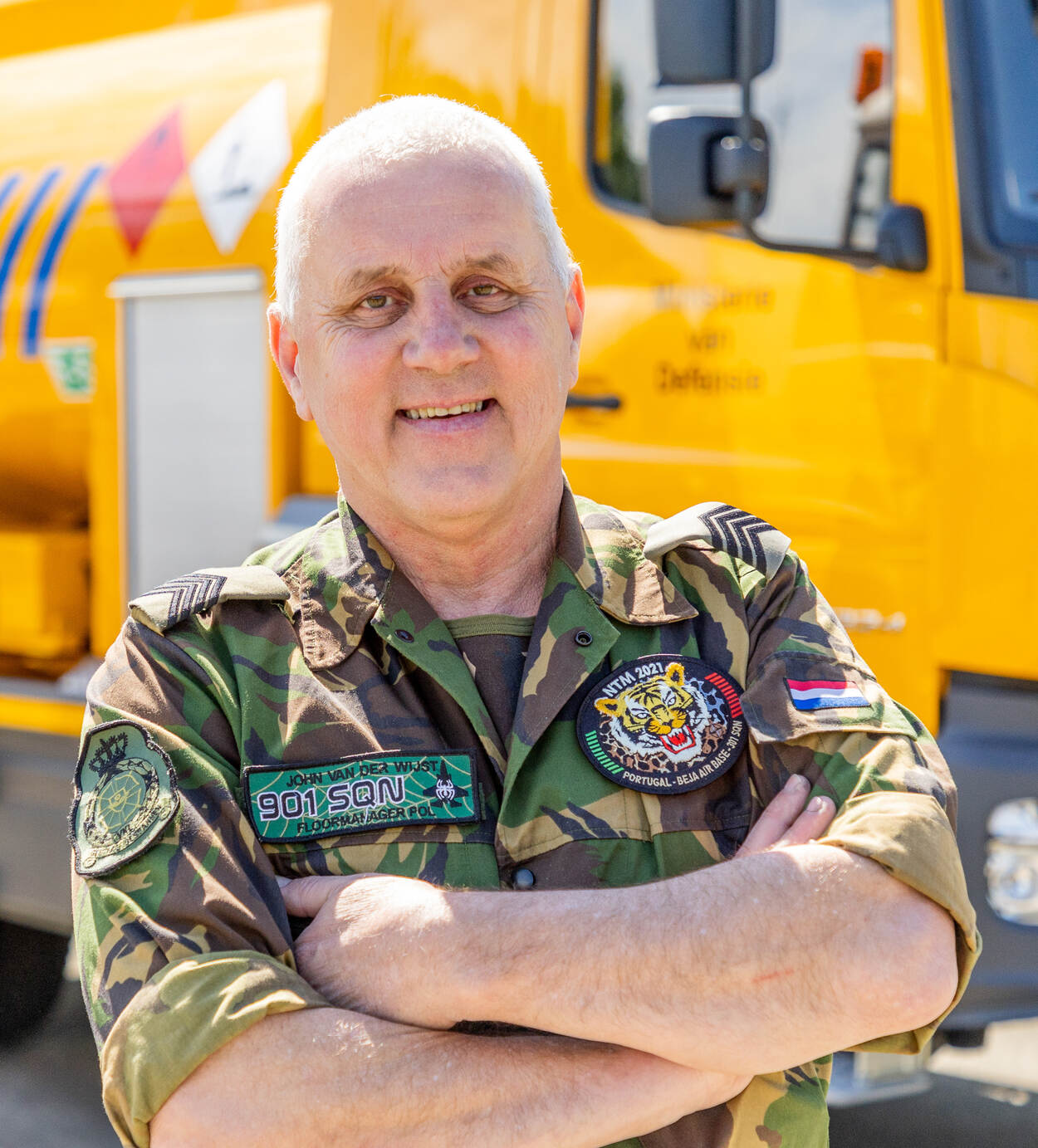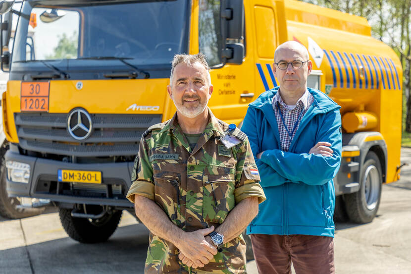 Projectleider bij het Materieel Logistiek Commando Land, Frans Verheul en brandstofspecialist kapitein Paulo Ferreira Gama glimmen. Van trots welteverstaan, want de recente uitlevering van het eerste nieuwe ‘tankvoertuig’ aan de Sectie POL (Petrol, Oil en Lubricants) van Vliegbasis Volkel is voor hen de kroon op het werk. Sterker, voor kapitein Ferreira Gama gaat hiermee een oude wens in vervulling. In een ver verleden nam de specialist zich voor dat, als hij ooit op de Staf zou werken, hij echt iets voor de mannen en vrouwen op de werkvloer wilde betekenen. In de aanloop van het vervangingsproject gaf hij hen dan ook alle ruimte mee te denken hoe de tankwagens eruit moesten gaan zien. Die aanpak resulteerde in een meer toegepast voertuig, waaraan ook fabrikant Dijssel zijn steentje bijdroeg.