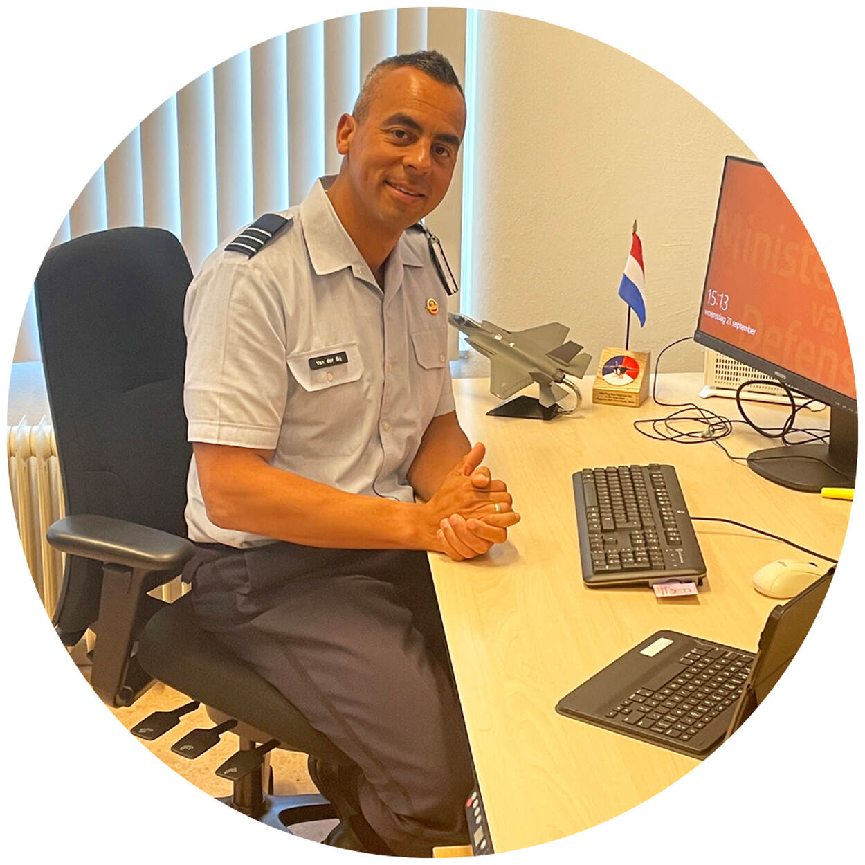 “Ik heb meer leidinggevende functies gehad, maar dit is verreweg de meest complexe met personeel all over de place in een veranderende luchtmacht. Ik heb er eigenlijk nooit zo over nagedacht, maar dat komt best wel overeen met mijn privéleven. We wonen zelf in Leiden na vier jaar in Amerika en onze familie woont op Curaçao en in Den Helder, Suriname en Tokyo.