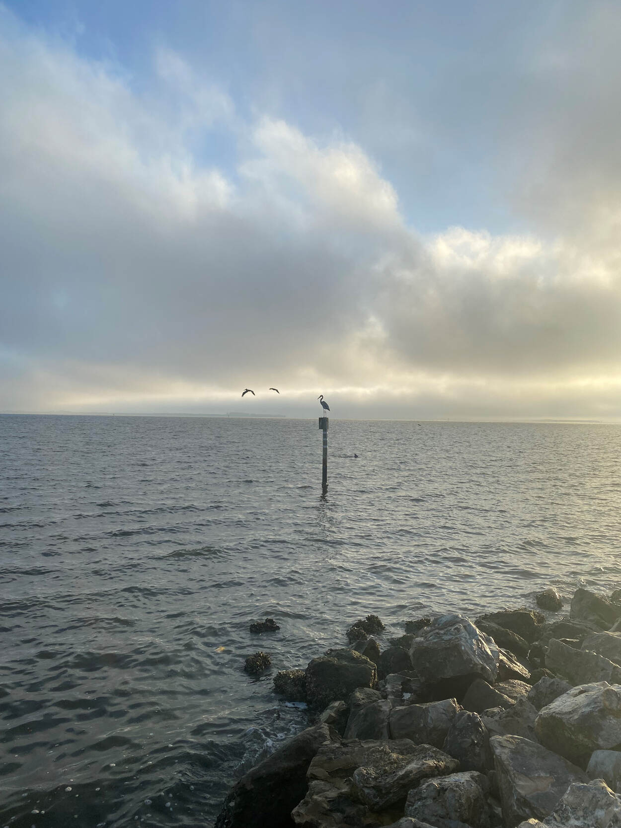 Een foto gemaakt tijdens het hardlopen na een werkdag. Wie goed kijkt naast de paal, ziet de rugvin van een dolfijn. “Zoiets maakt mijn dag”, zegt Bentvelzen. “Dit is de echte natuur. Geen dierentuin ofzo.”