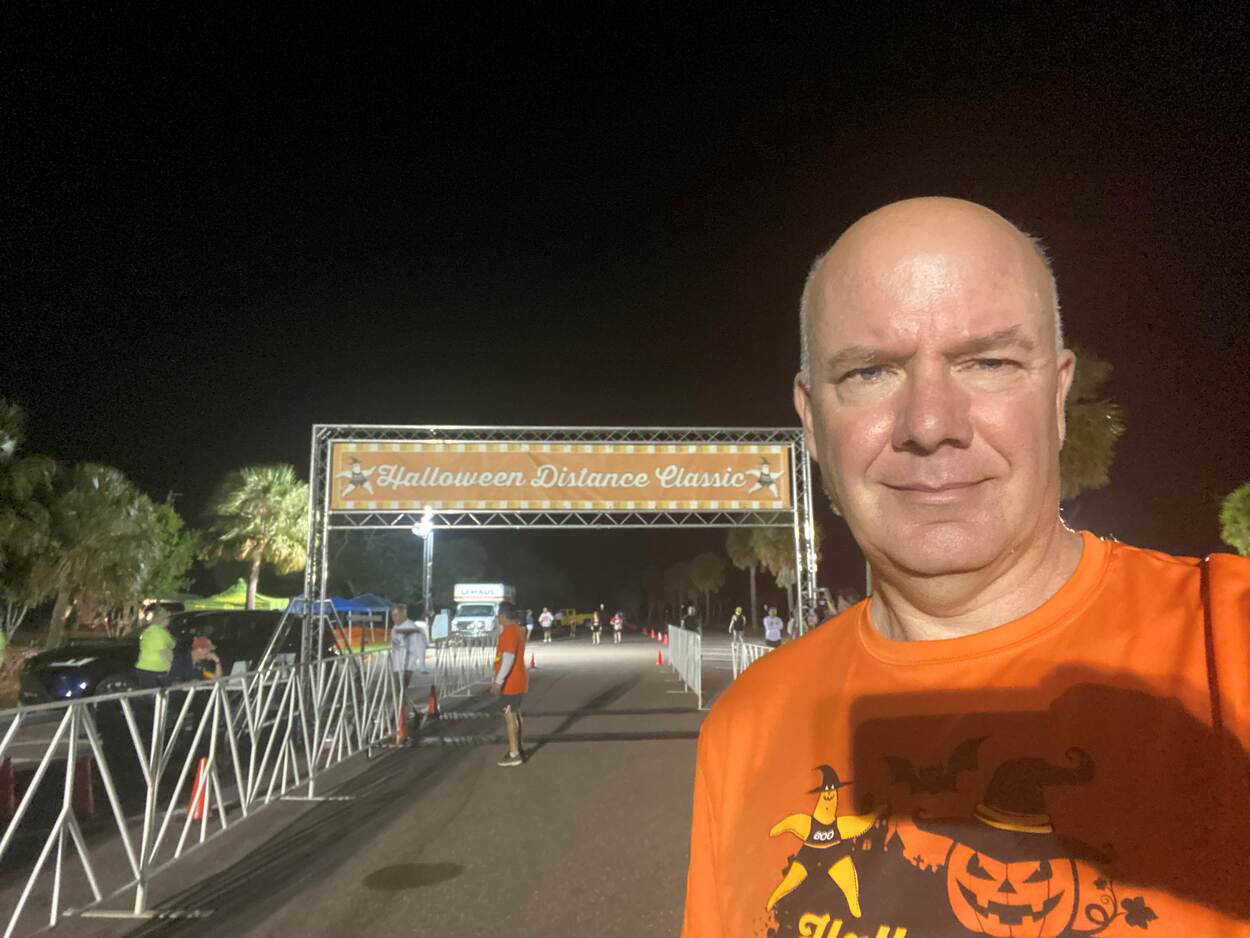 Tijdens Halloween deed Bentvelzen mee aan een hardloop-event. Dat begon om zeven uur ’s ochtends om de warmte voor te zijn. “Lekker, want bij de finish kwam het zonnetje al boven de palmbomen uit. Dan wordt het snel warm.”