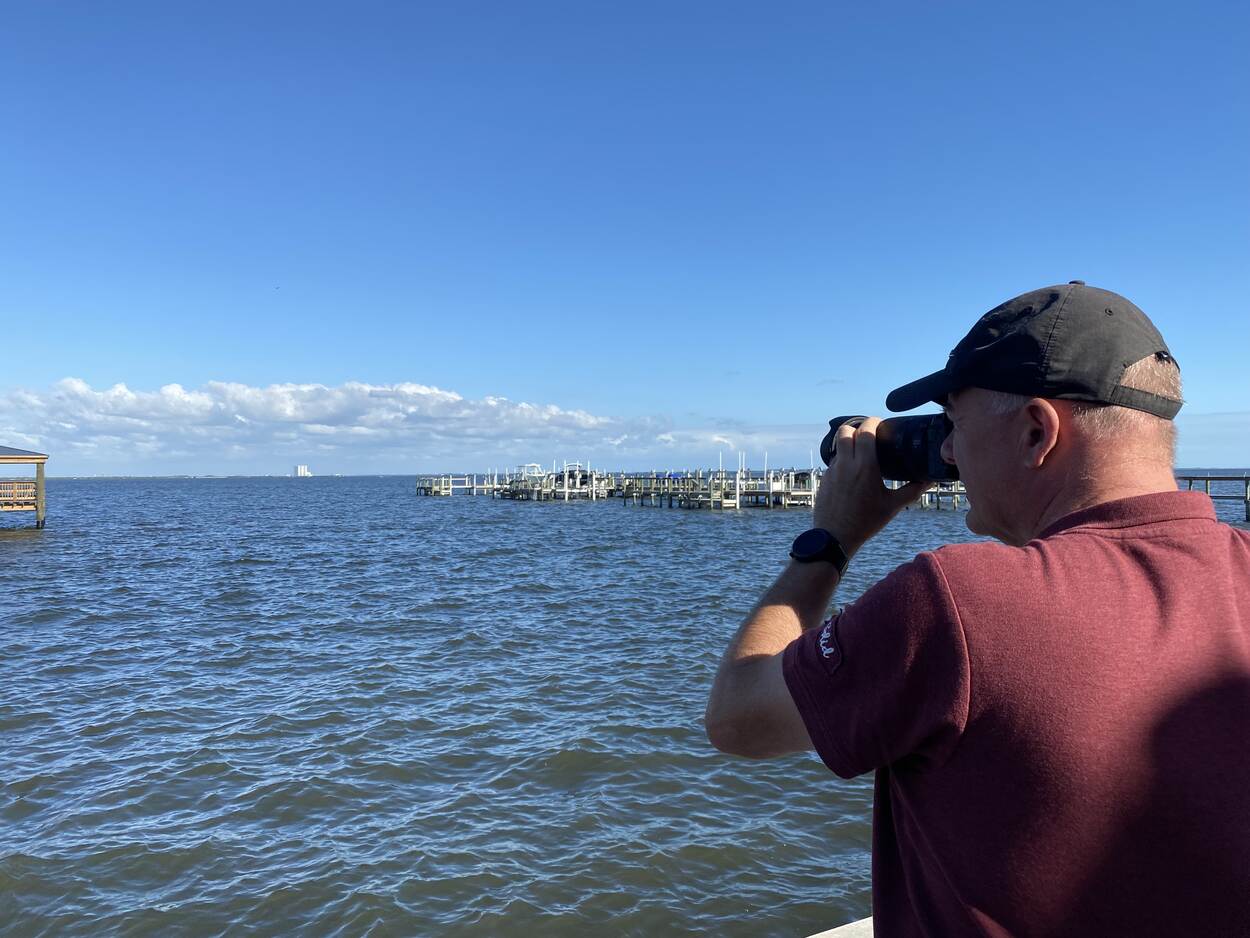 Een combinatie van passies. Bentvelzen, opgegroeid bij de geleide wapens, fotografeert een raketlancering nabij het Kennedy Space Center.