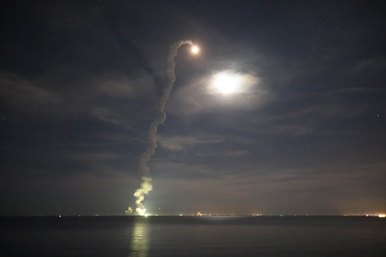 De lancering van NASA's onbemande maanraket Artemis, vastgelegd door Bentvelzen vanaf dezelfde locatie als bovenstaande foto.