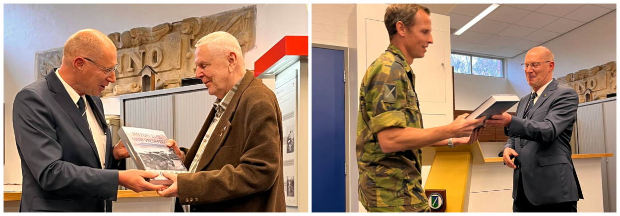“Ik had het wat eerder af willen hebben – door corona is het iets vertraagd – maar écht af is het natuurlijk nooit. Er komen altijd wel weer zaken boven water die je nog in het boek had willen verwerken. Ik ben vooral heel blij dat ik nog een paar mensen van het eerste uur heb kunnen spreken die nog helder van geest zijn. Aan een van hen, adjudant buiten dienst Pieter Meijn heb ik het eerste exemplaar aangeboden.”