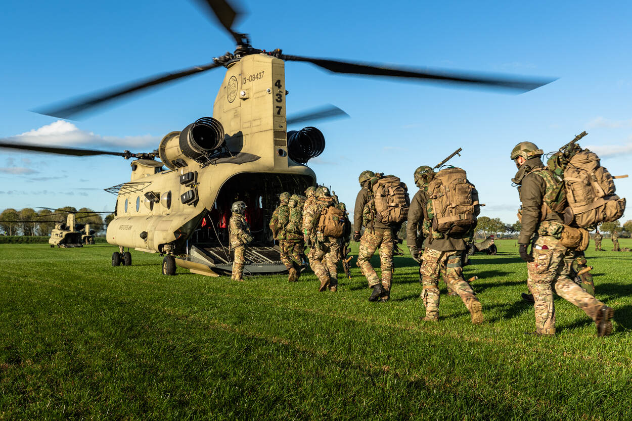 “Luchtlandingsoperaties doen we met snelheid, verrassing en doelgerichtheid”, vervolgt Hemmelder. “Dat is het mooie aan een AMB, een unieke capaciteit en één van de kroonjuwelen van Defensie. Een tegenstander kan zijn linies proberen te verdedigen, maar wij kunnen dergelijke verdediging met air mobility omzeilen en ergens anders onverwachts troepen aan de grond zetten om het strategisch effect alsnog te bereiken.”