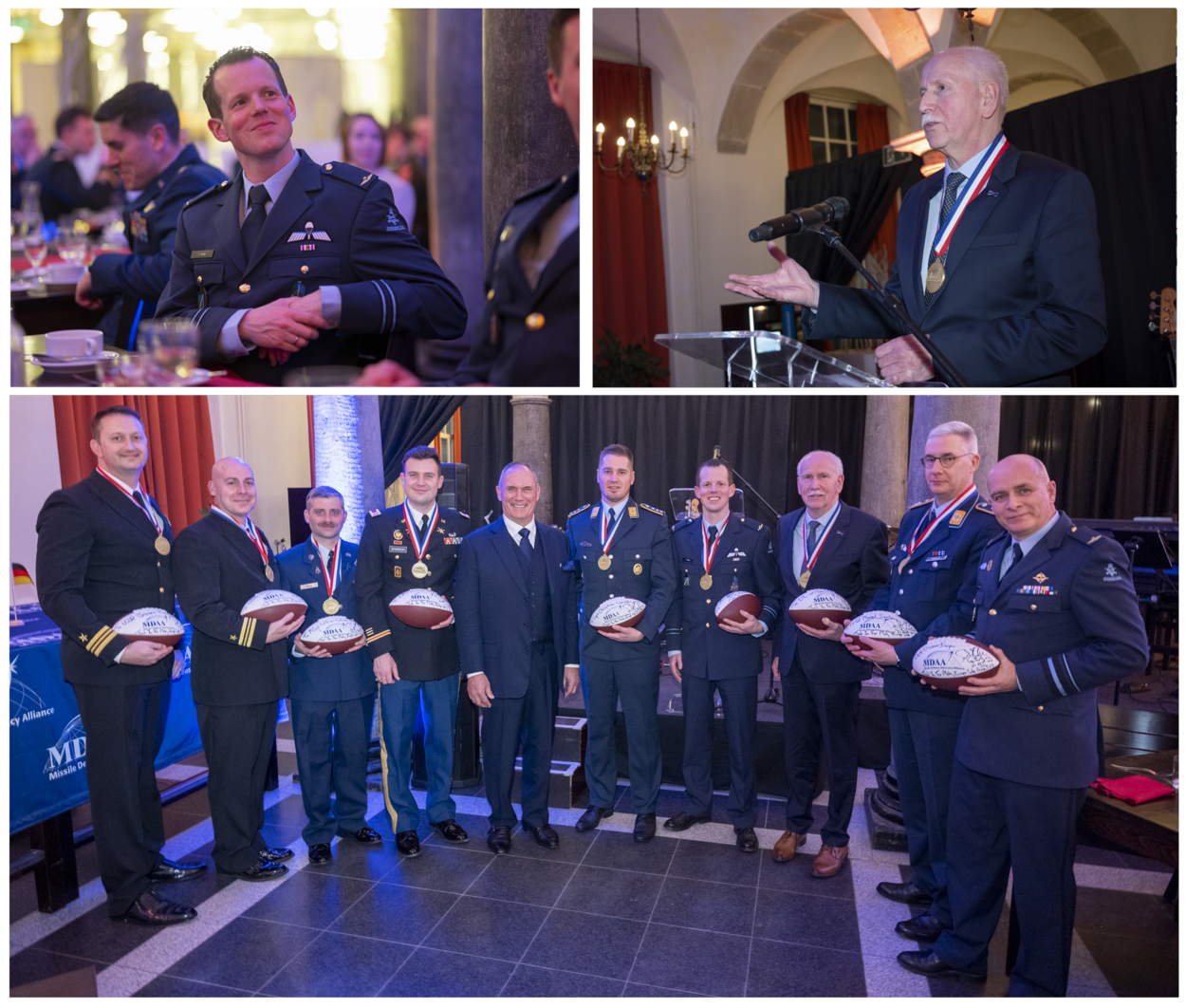 De award-uitreiking is een initiatief van een Amerikaanse non-profitorganisatie. Ditmaal ging het om de Europese variant, waarbij Europeanen en Amerikanen die in Europa gestationeerd zijn genomineerd konden worden. De award bestaat uit een medaille, een coin en een football. Foto’s: Herman Zonderland