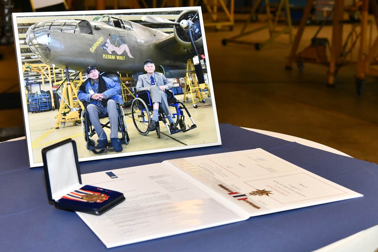 Die van Joop Heitinga is na veel speurwerk pas na zijn dood toegekend. “Het is goed om nu en op deze wijze stil te staan bij deze hechte vriendschap. Al ligt deze geschiedenis zeventig jaar, een paar generaties, achter ons”, sprak C-LSK Luyt. Vandaar dat ze er ook beiden staan in de hangaar op Gilze-Rijen, Franky en Beer.