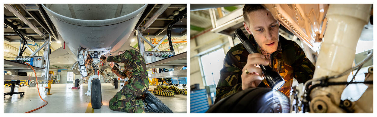 Begonnen als ‘inhuur’, is Bram van monteur en dock chief opgeklommen tot planner bij het Bureau Productiesturing- en Beheersing (BPB) van 980 Squadron. “Ik sleutel zelf dus niet meer. Mijn kennis van en de ervaring met de F-16 kan ik nu op afstand delen met de collega’s.” Hij mag dan langer zijn betrokken bij de F-16 dan zijn meeste collega’s, de beleving is niet uniek. “De medewerkers hier weten echt alles van het toestel, ze graven er echt in”, roemt luitenant-kolonel Pinto Teixeira hen. “Bij problemen weten ze vaak precies wat er aan de hand is. Bijna iedere monteur heeft wel een specialiteit. De een hoort direct als er iets is met de motor, een ander is weer helemaal los op de cockpit. Die zie je om 8 uur ‘s morgens naar binnen kruipen, om er bij wijze van spreken acht uur later uit te komen. Burger of militair, vast in dienst of inhuur maken bij 980 Squadron geen verschil. De taal van dit vliegtuig kent geen barrières. Iedereen verstaat het vakmanschap.”