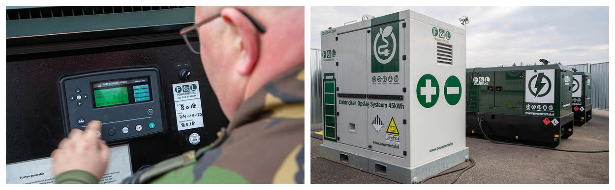 De volgende stap in het testproces is de uitbreiding van de accupacks met zonnepanelen en een brandstofcel die draait op waterstof. Hiermee kan een kampement tijdens een missie op termijn alle benodigde stroom volledig zelf opwekken, opslaan en op een later gewenst moment gebruiken. Foto’s: sergeant-majoor Cristian Schrik