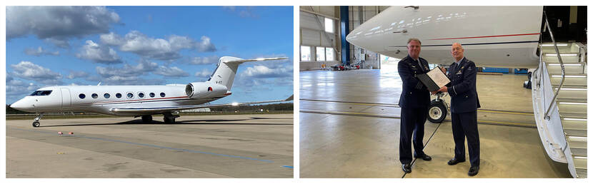 De G650ER vervangt de Gulfstream IV die is sinds 1996 in gebruik is bij de luchtmacht. Jet Aviation kocht de G650ER vorig jaar in opdracht van Defensie. Het toestel is gebouwd in 2015 en het heeft ongeveer 2.000 uren op de teller. Na aankoop heeft Jet Aviation de business jet omgebouwd naar de vereiste configuratie. Dat proces is nu afgerond waarna het toestel aan Defensie is overgedragen. Op 24 maart overhandigde de Directeur Militaire Luchtvaartautoriteit commodore Jean-Paul Apon het militair typecertificaat (MTC) aan de commandant Air Mobility Command, kolonel Jorrit de Gruijter. Met dit MTC mag het toestel door Defensie worden ingezet.