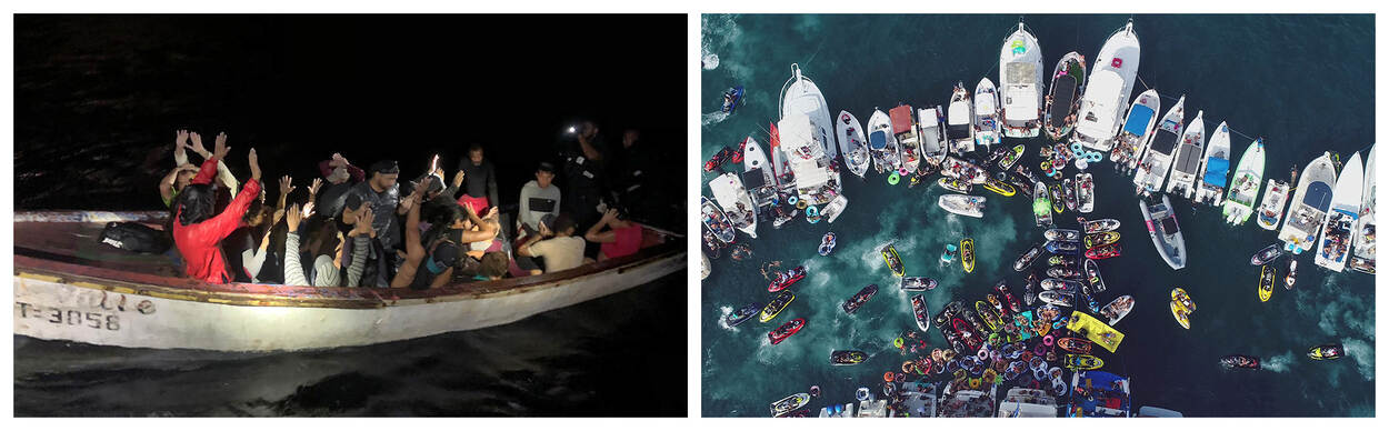 Als die bootjes relatief dicht bij de kust zijn, is de AW139 perfect om hulp te bieden. De heli’s zijn dat ook om zieke of gewonden mensen van cruise- of koopvaardijschepen te halen. De Dash 8 kan in een groter gebied op zoek naar bootjes. “Wij hebben vlotten bij ons, die we eruit gooien. Daar kunnen drenkelingen in klimmen, waarna wij schepen in de omgeving erop af sturen om ze te halen.”