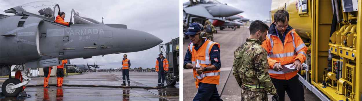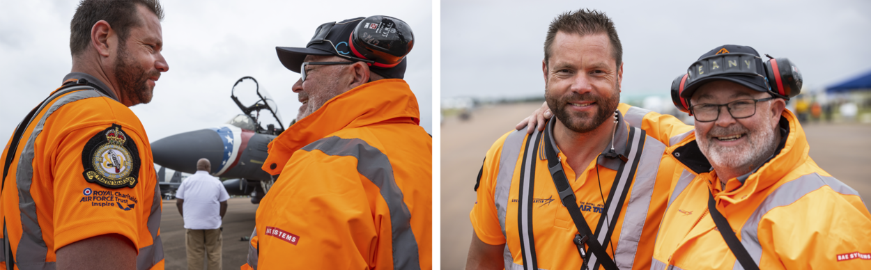 Elk jaar trappelen ze de stenen uit de stoep om te gáán. Jan en Martijn zijn vrijwilliger op de Royal International Air Tattoo (RIAT), de grootste militaire air show ter wereld die gehouden wordt op de Britse vliegbasis RAF Fairford. Jan tankt vliegtuigen, Martijn is teamleider aircraft handling. Jan werkt in het verleden als brandstofspecialist op Leeuwarden en is daarnaast in zijn vrije tijd amateurfotograaf. In 2017 gaat hij als professioneel beeldmaker aan de slag bij het in Den Haag gevestigde Mediacentrum Defensie (MCD). Martijn is nog steeds op Leeuwarden geplaatst, als F-35 Technician B.