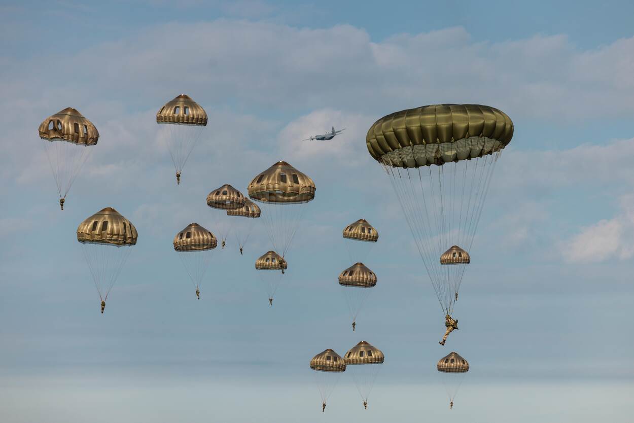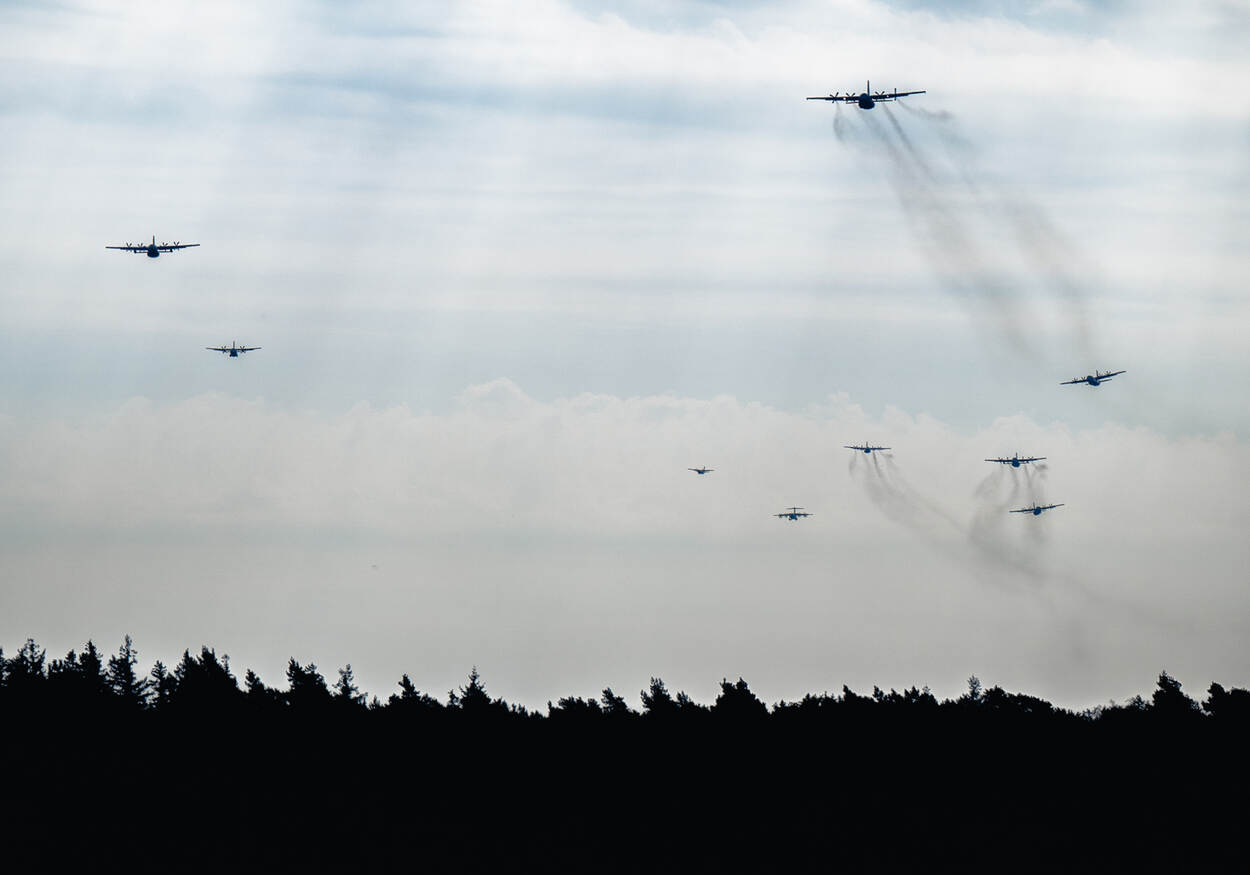Bij het snel inzetten van troepen door de lucht komt veel kijken. Het gaat namelijk niet alleen om het droppen van militairen maar ook om de bevoorrading vanuit de lucht. Genoeg reden om deze operaties regelmatig te trainen. Midden september doen dat ongeveer achthonderd militairen uit elf landen in internationaal verband tijdens Falcon Leap. Deze parachutistenoefening kan echter niet zonder transportvliegtuigen. Dus opereren die twee weken lang vanaf Vliegbasis Eindhoven. Dagelijks vliegen ze low level-missies boven Nederland en België waarin ze tijdens tientallen missies pakketten (eerste week) en parachutisten (tweede week) droppen.