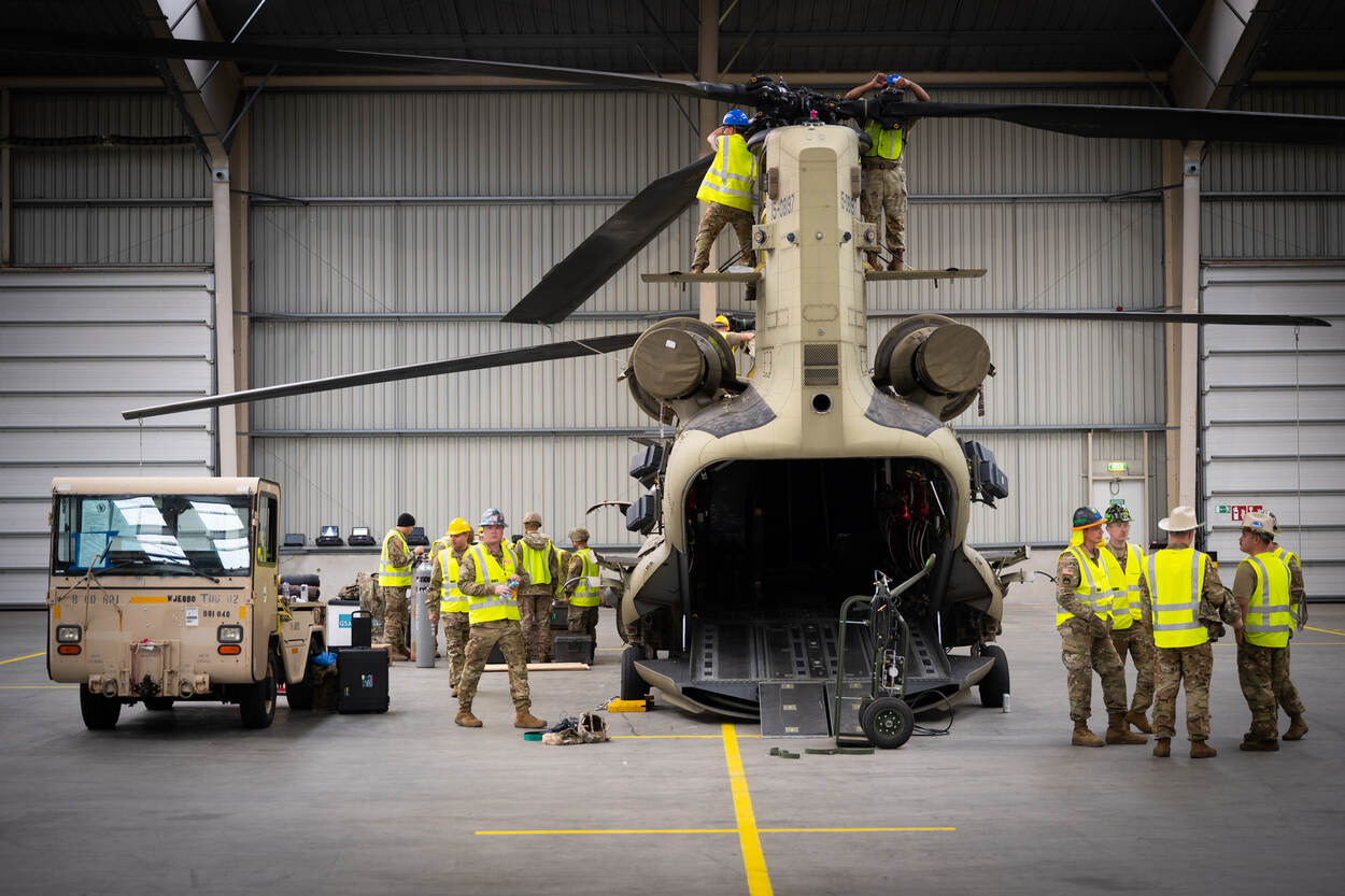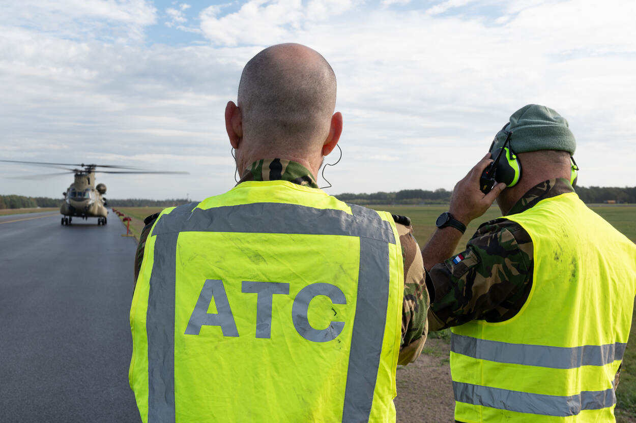 Zo’n tien tot vijftien personen zijn fulltime bezig met HNS. Ook is er dagelijks ondersteuning van de luchtverkeersleiding, brandweer, POL, birdcontrol unit, GU, legering, voeding, toegangscontrole, luchthavendienst, CIS, BIV, Meteo, communicatie, het 980 Squadron en dag en nacht bewaking. Boer: “Heel veel zaken gebeuren op de achtergrond. Ik sta nu even in de schijnwerper, maar we doen dit echt als team. Eén team, één taak is leuk, maar je moet het niet alleen zeggen, je moet het vooral zo doen. Zo is mijn collega op de flightline dubbel mijn leeftijd en heeft ook dubbel zoveel ervaring. Daar maak ik dus weer dankbaar gebruik van. Het besef moet er vooral zijn dat dit geen oefening is, maar een operatie. En een grote ook. Wat hier binnenkomt, is bijna net zoveel als wij in de hele luchtmacht aan helikopters hebben.”