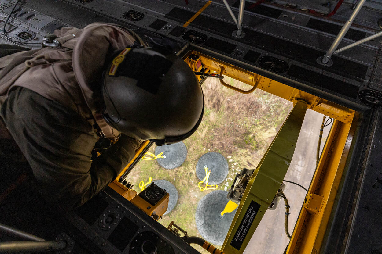Ook voor vliegers van de Chinooks was deze hulp-inzet aan Rijkswaterstaat nieuw. Foto: korporaal Wessel Zuijderduin