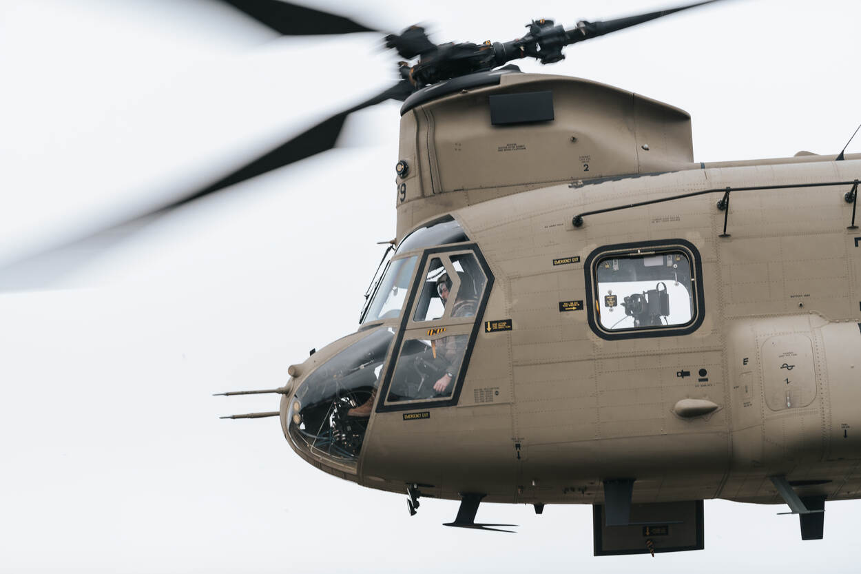 De imposante Chinooks trokken veel bekijks, mede door het geluid en de downwash. Foto: korporaal Wessel Zuijderduin
