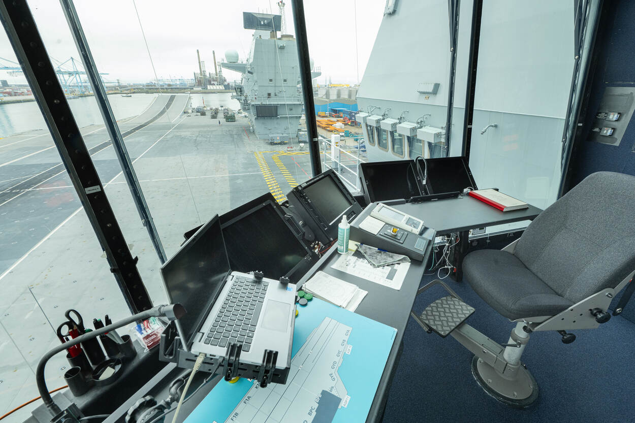 Aan boord van de Prince of Wales is plaats voor 1600 bemanningsleden en 36 F-35B’s (de versie die verticaal kan starten en landen), maar voor Steadfast Defender waren dat er acht. Voor aankomst in Rotterdam waren deze toestellen al naar hun thuisbasis gevlogen. Wel aan boord waren nog zes Merlins, onder andere in de airborne early warning-variant. Daarvoor draagt de helikopter een radar met een opblaasbare koepel aan de zijkant van de romp (zie eerste foto in de carrousel hieronder).