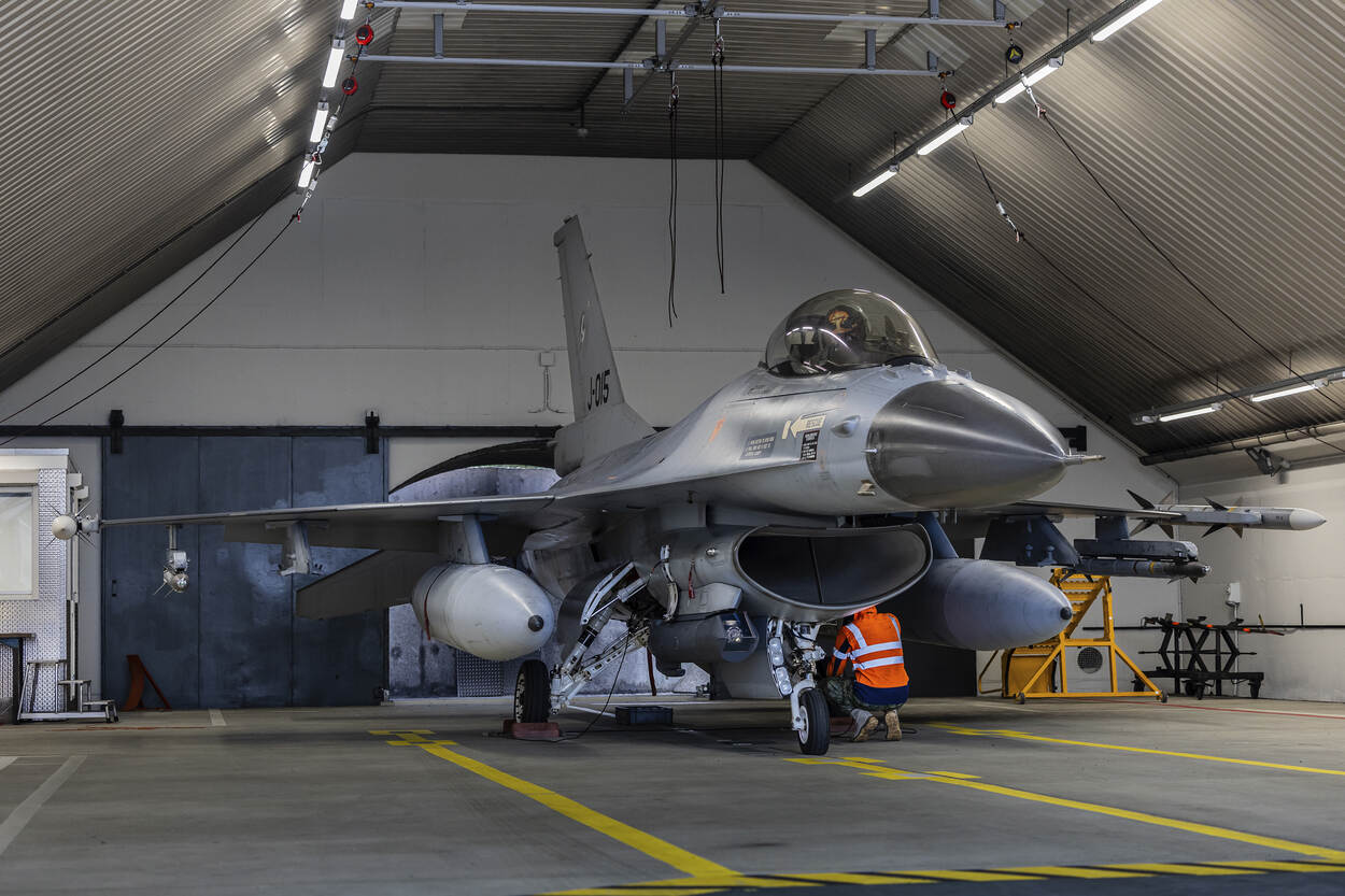 Een F-16 van de QRA in een shelter op Vliegbasis Volkel.