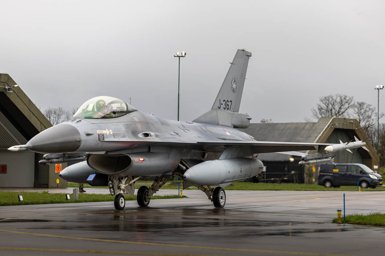 Een F-16 op weg naar de startbaan van Vliegbasis Volkel. Bij een QRA draait alles om snelheid.