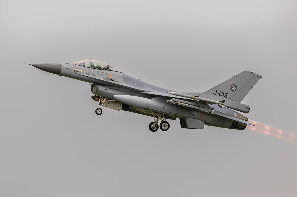 Voor de laatste keer stijgt een F-16 op voor een missie van de Quick Reaction Alert.