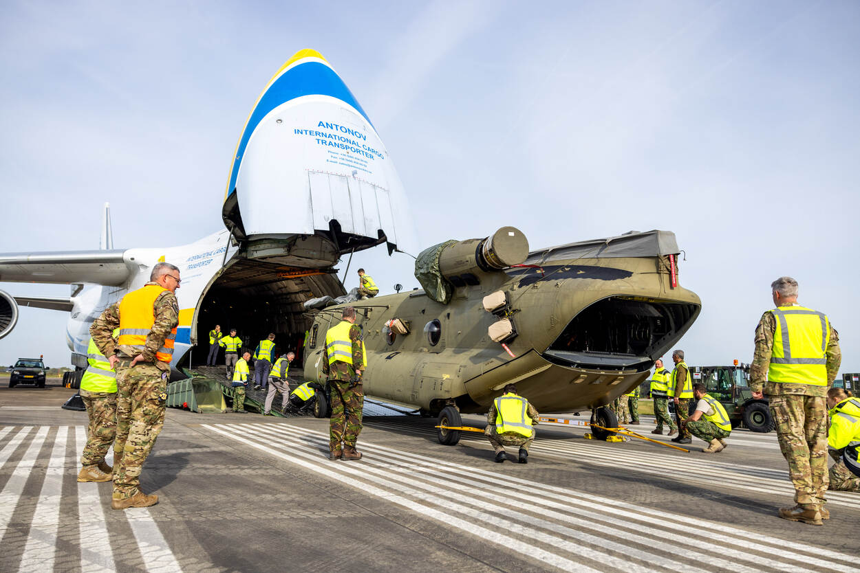 Zien hoe het inladen van twee Chinooks in een An-124 gaat? Kijk dan onderstaande time-lapse. Foto: Hans Roggen. Video: Mediacentrum Defensie