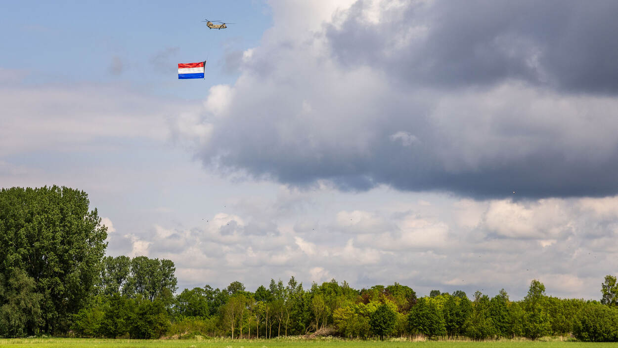 Maar het DHC heeft op Bevrijdingsdag nog een helikoptertroef in handen. Een bijzondere toevoeging van dit jaar is het vliegen van Chinook van 298 Squadron boven het bevrijdingsdefilé in Wageningen. De helikopter is afgezien van het kenmerkende geluid, qua beeld ook niet te missen, want eronder hangt een Nederlandse vlag van twintig bij dertien meter groot. Op deze manier laat de luchtmacht tastbaar en trots het nationale symbool vliegen boven de plek waar 79 jaar geleden de overgave van de Duitse bezetter werd getekend, wat de teruggave van onze vrijheid betekende.
