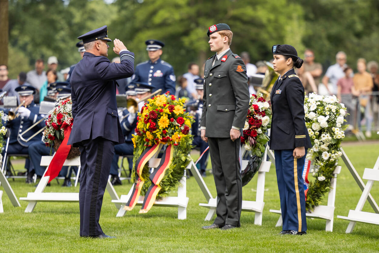 Tijdens de herdenking zijn verschillende kransen gelegd, onder meer door Commandant der Strijdkrachten generaal Onno Eichelsheim. Dat gebeurde in aanwezigheid van onder anderen drie Amerikaanse veteranen uit de Tweede Wereldoorlog. Onder de aanwezigen waren ook minister van Buitenlandse Zaken Hanke Bruins Slot, Commandant Luchtstrijdkrachten luitenant-generaal André Steur, Commandant Zeestrijdkrachten viceadmiraal René Tas en de Amerikaanse ambassadeur Shefali Razdan Duggal.