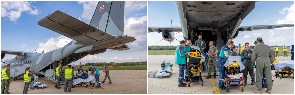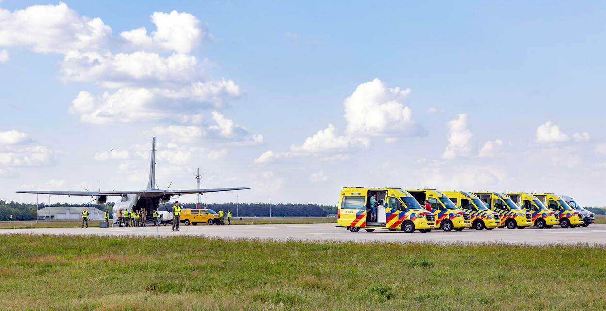 Tijdens Vigorous Warrior wordt de hele medische keten getraind. Daarbij ook de afvoer naar een Role 4, in dit geval via Vliegbasis Eindhoven.