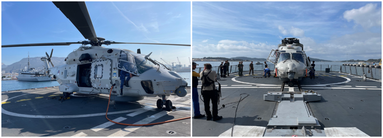 Ook vorig jaar nam 860 Squadron deel aan deze oefening. Dit jaar gingen het voor het eerst Nederlandse NH90’s voor een aantal dagen aan boord van het Franse fregat Lorraine. Dat is een onderdeel van de Nederlandse en Franse samenwerking, om te bekijken wat ervoor nodig is om op termijn voor langere tijd een Nederlandse NH90 aan boord van een Frans schip te detacheren. Foto: Marine Nationale