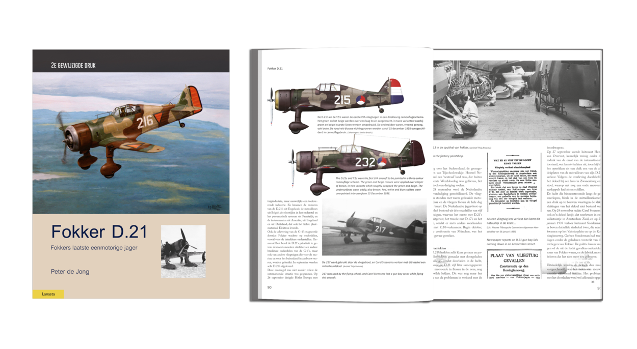 ‘Fokker D.21 – Fokkers laatste eenmotorige jager (2e Gewijzigde Druk)’ met ISBN9789464564006 is geschreven door Peter de Jong en uitgegeven door Lanasta, een imprint van Walburg Pers. De hardback op formaat 22 x 28 cm telt 248 pagina’s, is voorzien van Nederlandse tekst en Nederlandse en Engelse bijschriften. De prijs is € 39,99. Kijk voor meer informatie op www.walburgpers.nl.