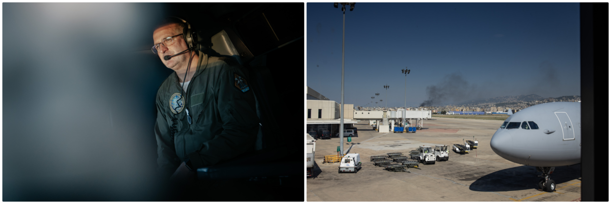 Terwijl Arnold naar achteren loopt voor een bak koffie, komt de Belgische gezagvoerder majoor Pieter op de intercom: “Goedemorgen, hier een update vanuit de cockpit. Alles is rustig op de grond.” Tijdens het dalen zitten de neuzen tegen het raam. Iedereen is benieuwd naar hoe Beiroet eruitziet, of je iets merkt van bombardementen in de omgeving. Eenmaal op de grond gaat het ineens allemaal heel snel. Medewerkers van de Nederlandse ambassade regelen samen met het SCOT het essentiële papierwerk. Iedereen krijgt zijn boardingpass en na enige tijd verdwijnen de passagiers een voor een in de vliegtuigslurf. Niet alleen Nederlanders trouwens, maar ook Belgen, Finnen en Ieren. Van de gezichten is een soort gelatenheid af te lezen.