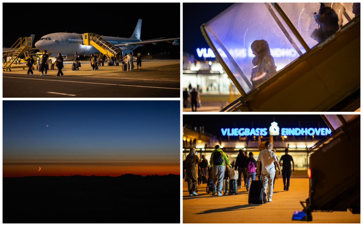 Na lange tijd in onzekerheid te hebben gezeten, komt een groep Nederlanders – en buitenlanders uit onder meer Ierland en België – aan op Vliegbasis Eindhoven.
