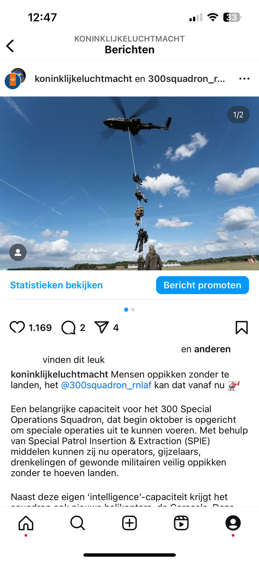 Mensen oppikken zonder te landen. Een belangrijke capaciteit voor het 300 Special Operations Squadron, dat begin oktober is opgericht om speciale operaties uit te kunnen voeren. Met behulp van Special Patrol Insertion & Extraction (SPIE)-middelen kunnen zij nu operators, gijzelaars, drenkelingen of gewonde militairen veilig oppikken zonder te hoeven landen. Meer zien en lezen? Klik dan op deze link.