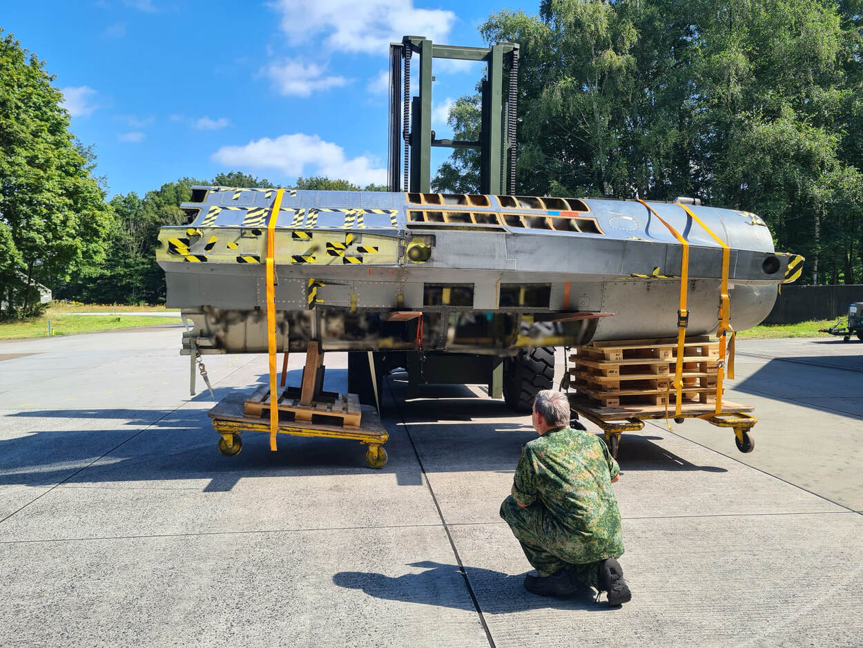 Een lege romp van een eerder ontmantelde F-16 kan nog prima als reserveonderdeel dienen.
