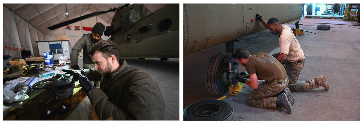 Hoofd Gereedstelling en Onderhoud (HG&O) kapitein Thomas en Toezichthouder Technische Dienst (TD) adjudant Peter beleven in december een drukke periode op Al-Asad Air Base (AAAB). Het duo is daar voor de NAVO-missie Irak (NMI). Dat hun dagplanning tijdelijk wat voller zit, heeft onder meer te maken met een ongebruikelijke klus die ze in december krijgen: het uitvoeren van de 320-uursinspectie van de Chinook.